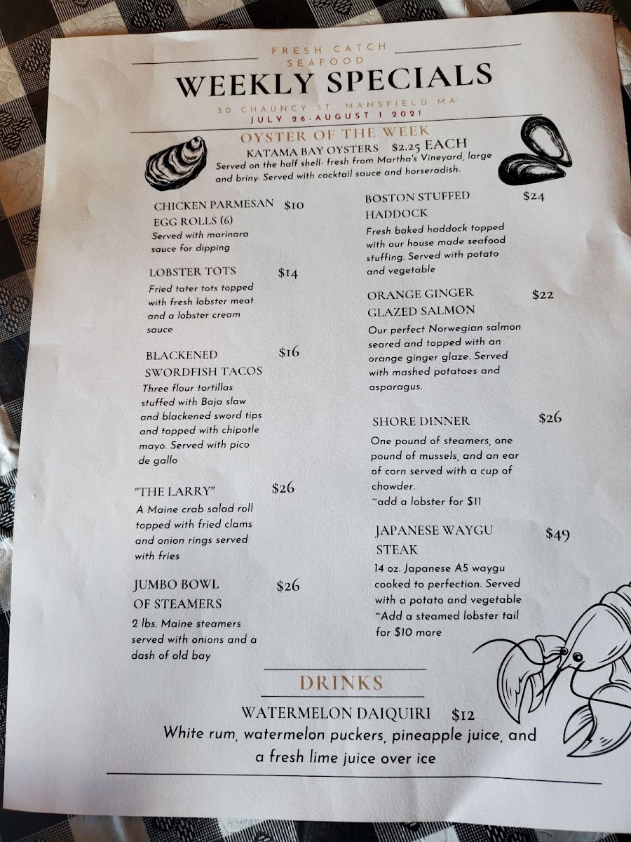 Welcome to Fresh Catch, a culinary treasure located at 30 Chauncy St #4 in Mansfield, MA. This seafood haven is where freshness meets flavor, providing an unparalleled dining experience that leaves both locals and visitors raving. With a focus on quality, the menu offers an array of beloved seafood staples, from succulent lobster to perfectly breaded haddock, each dish crafted with care and skill.